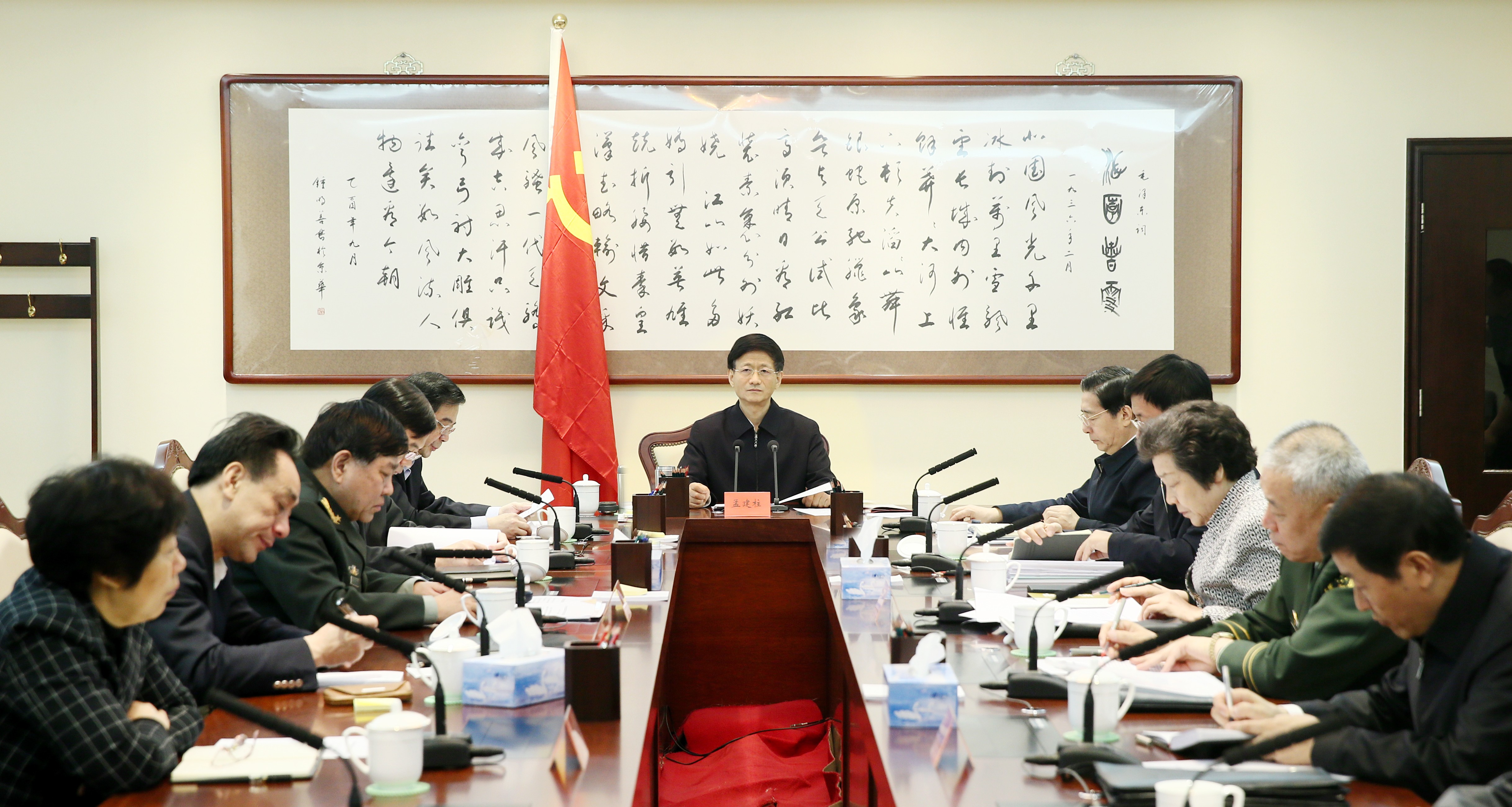 3月21日,中共中央政治局委员、中央政法委书记孟建柱在北京主持召开中央政法委员会第十次全体会议,学习贯彻全国两会精神,研究维护社会大局稳定、扎实推进司法体制改革等工作。 郝帆 摄