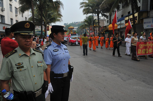 当祖国的北方还是咋暖还寒之际,云南西南边陲的勐腊县早已烈日炎炎、山花灿烂,有“东方狂欢节”之称的泼水节,已悄然而至。为确保整个活动热烈、隆重、欢乐、文明、安全进行,勐腊县公安局整合局机关、城区派出所、边防大队、消防大队、武警中队等部门投入活动安保工作。