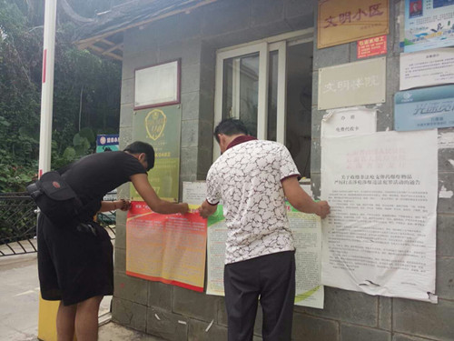 2015年9月22日勐腊镇综治办工作人员联合各社区工作人员进入到社区所辖小区粘贴“平安建设”宣传单和公开信25份,争取做到进入每个小区,进一步提高群众对当地安全的满意率和对平安建设的知晓率和参与率,切实维护辖区稳定,积极促进平安、法治、和谐勐腊建设。