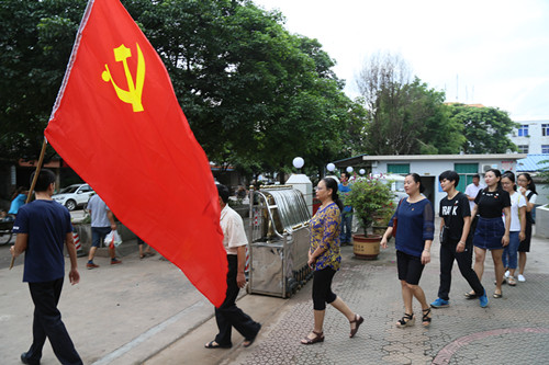 为充分发挥党员的先锋模范作用,有力推进“两学一做”学习教育向纵深发展。7月1日,县法院党总支从下设3个党支部中抽调20余名党员,在党旗的引领下,由院党总支书记章琼同志带领徒步到曼它拉路社区开展建党95周年纪念活动。