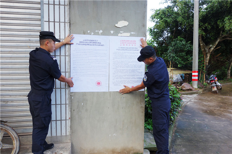 期间,民警以“缴、控、打”为主题,紧紧结合种植场的治安实际,深入种植场进行逐队逐户走访摸排和法制宣传、粘贴活动通告,全力开展非法枪爆物清查收缴工作。