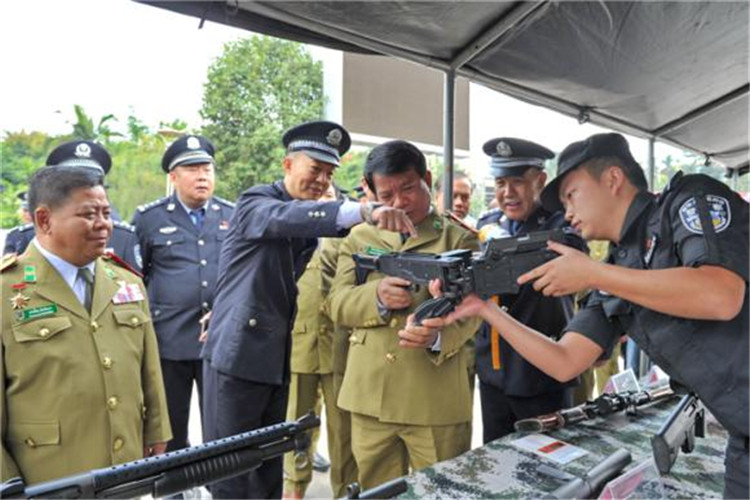 云南省厅党委委员、副厅长王龙德,州委常委、政法委书记赵毅,副州长、州公安局局长王方荣,州政府秘书长李萍及云南省公安厅反恐总队,新疆维吾尔自治区公安厅驻滇办,西双版纳州政府应急办,勐腊县委、县人大、县政府等领导干部亲临现场观摩演练,老挝南塔省、丰沙里省、乌多姆赛省、琅勃拉邦省、波乔省、沙耶武里省六省公安厅厅长及夫人应邀观摩了演练。