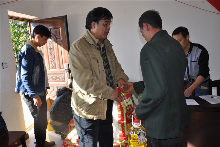 清晨,勐腊县委政法委扶贫慰问组沿着泥泞的道路,带着党组织的深情厚意来到帮扶村河边村,对17户贫困户和1户五保户,发放了食用油、大米等慰问物资,并代表县委政法委党支部对他们致以节日的问候。
