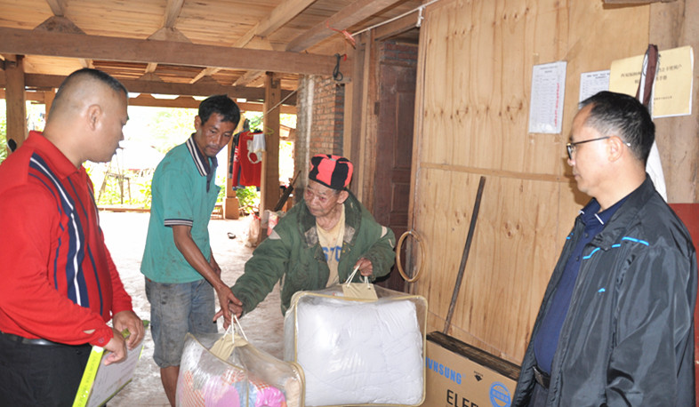 邓长脚现在83岁,瑶族,是县委政法委挂联的勐伴镇河边村村民,因身体残疾缺乏劳动力,只能长期寄住在同村的建档立卡户周云才家里,生活极度匮乏,县委政法委自2015年扶贫挂钩河边村以来,就对邓长脚老人给予关心照顾,协调落实机关政策补助,并定期对其看望慰问,近期,当驻村领导在了解到老人希望能看上电视后。县委政法委党支部发动党员干部职工捐款2370元,购买了电视机、被褥、冬衣、棉鞋等生活必需品。
