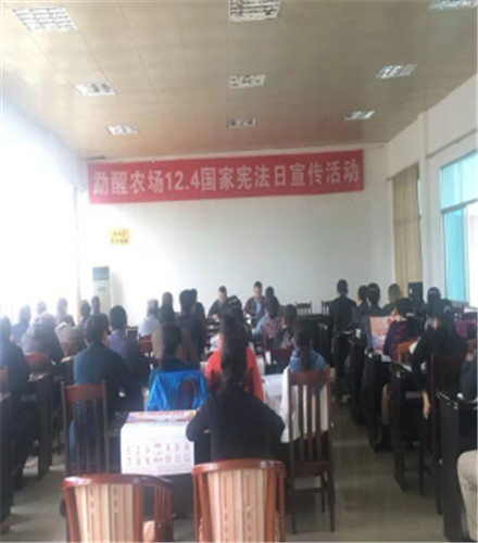 本次活动主要分为五个部分:一是组织召开12.4国家宪法日宣传活动会暨国家宪法日宣誓大会。会议在招待所二楼会议室召开,农场党委副书记曾学文同志主持会议,农场党