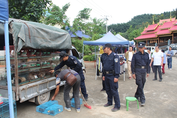 勐腊县森林公安局关累派出所到关累村与缅甸村寨举行的边交贸易现场开展清理检查 2018-11-21